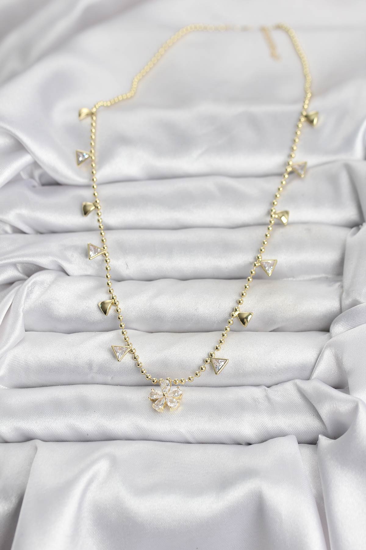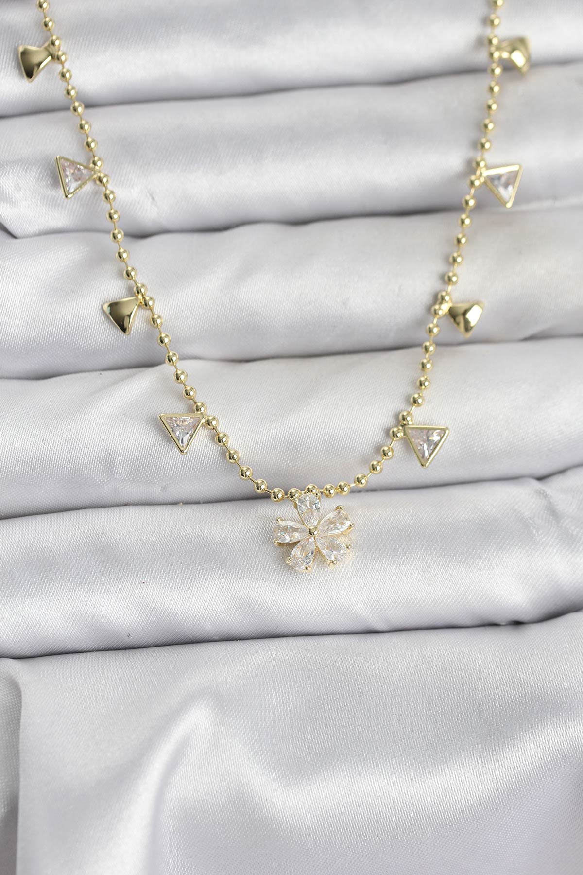 EBJ Pirinç Gold Renk Zirkon Taşlı Çiçek Model Kadın Kolye - Sutton