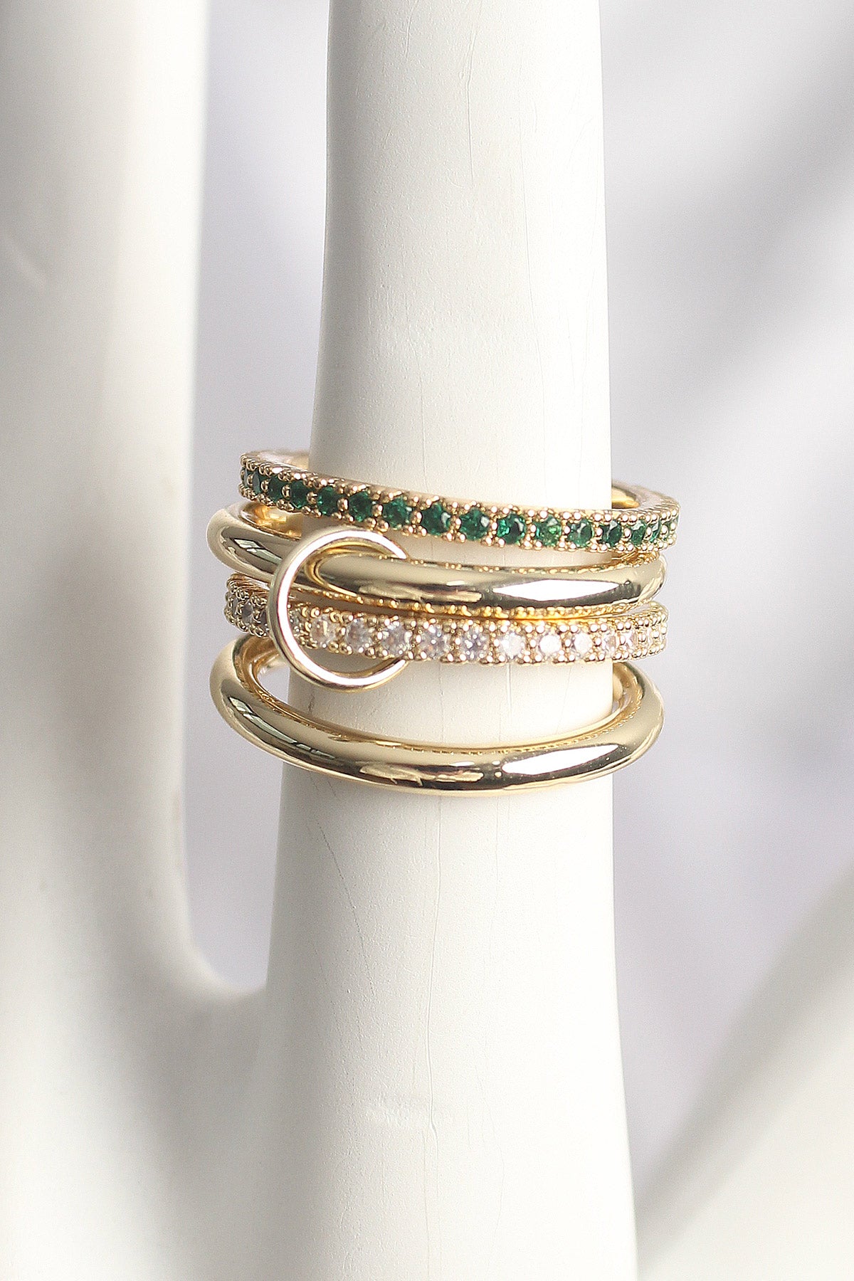 EBJ Rice God Color Green Zircon Stone 4-Piece Women's Ring - Ciudad Real