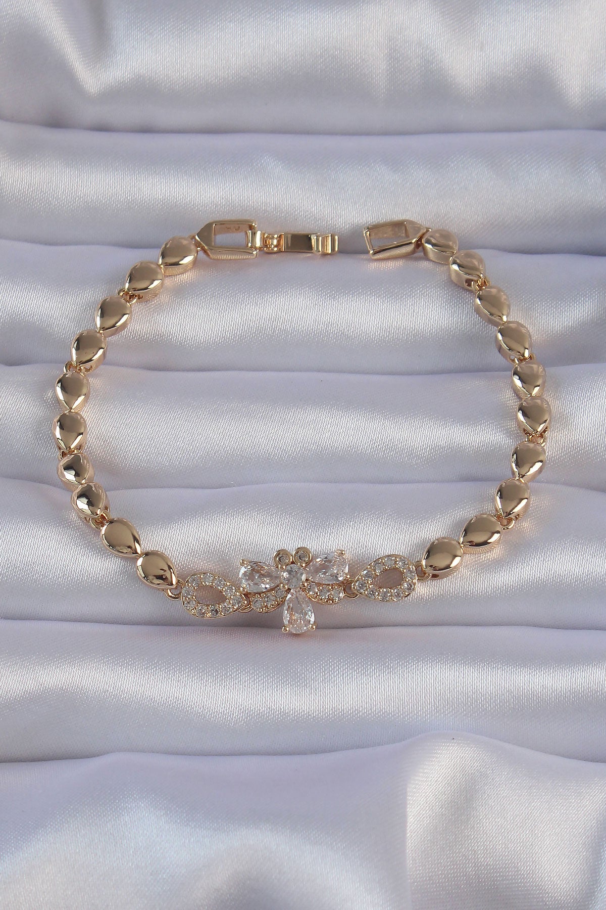 EBJ Rice Gold Color Dragonfly Figured Drop Model Bracelet with Zircon Stone - Goes