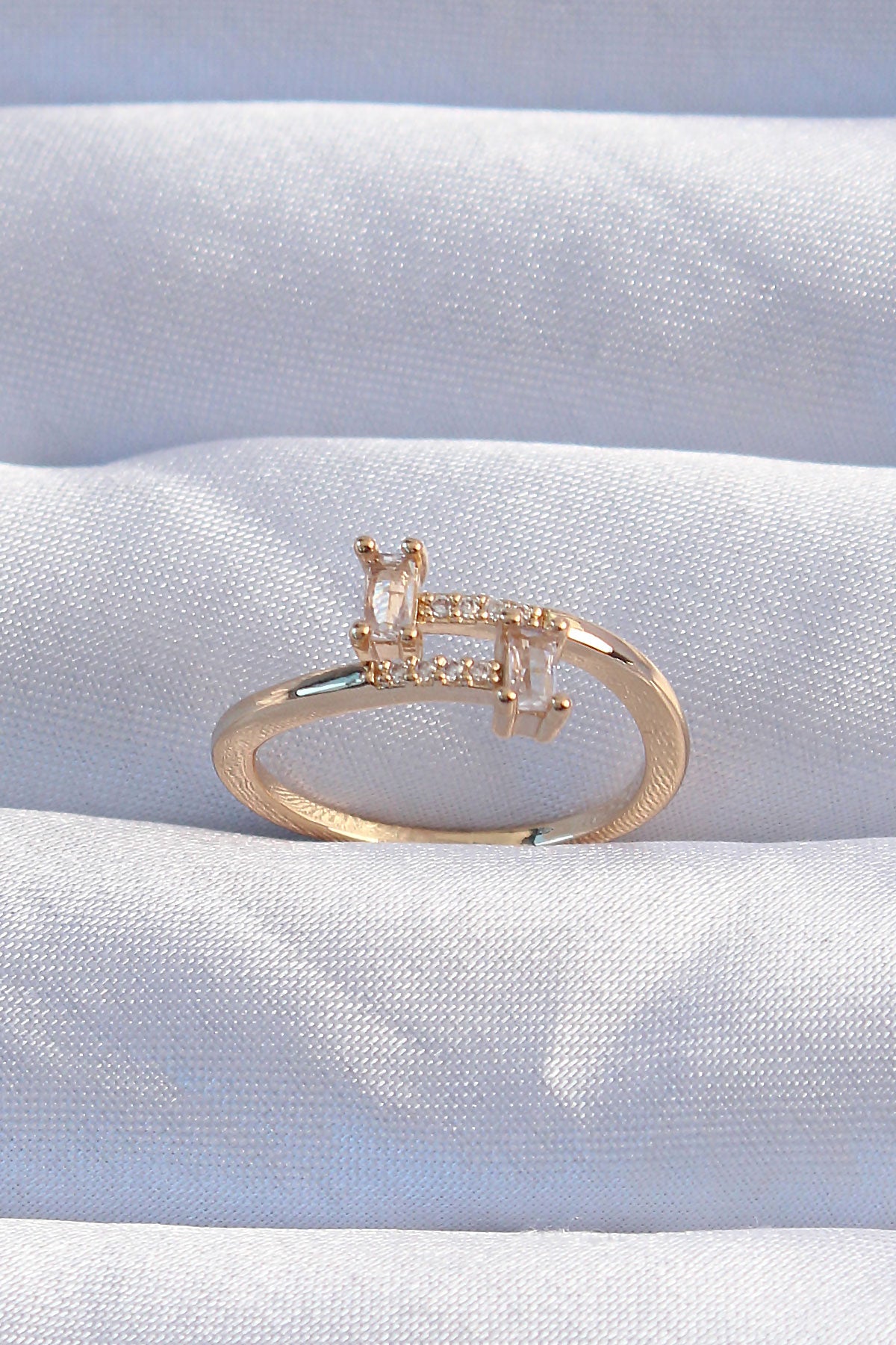 EBJ Rice Gold Color Zircon Stone Geometric Adjustable Ring - Kakhovka