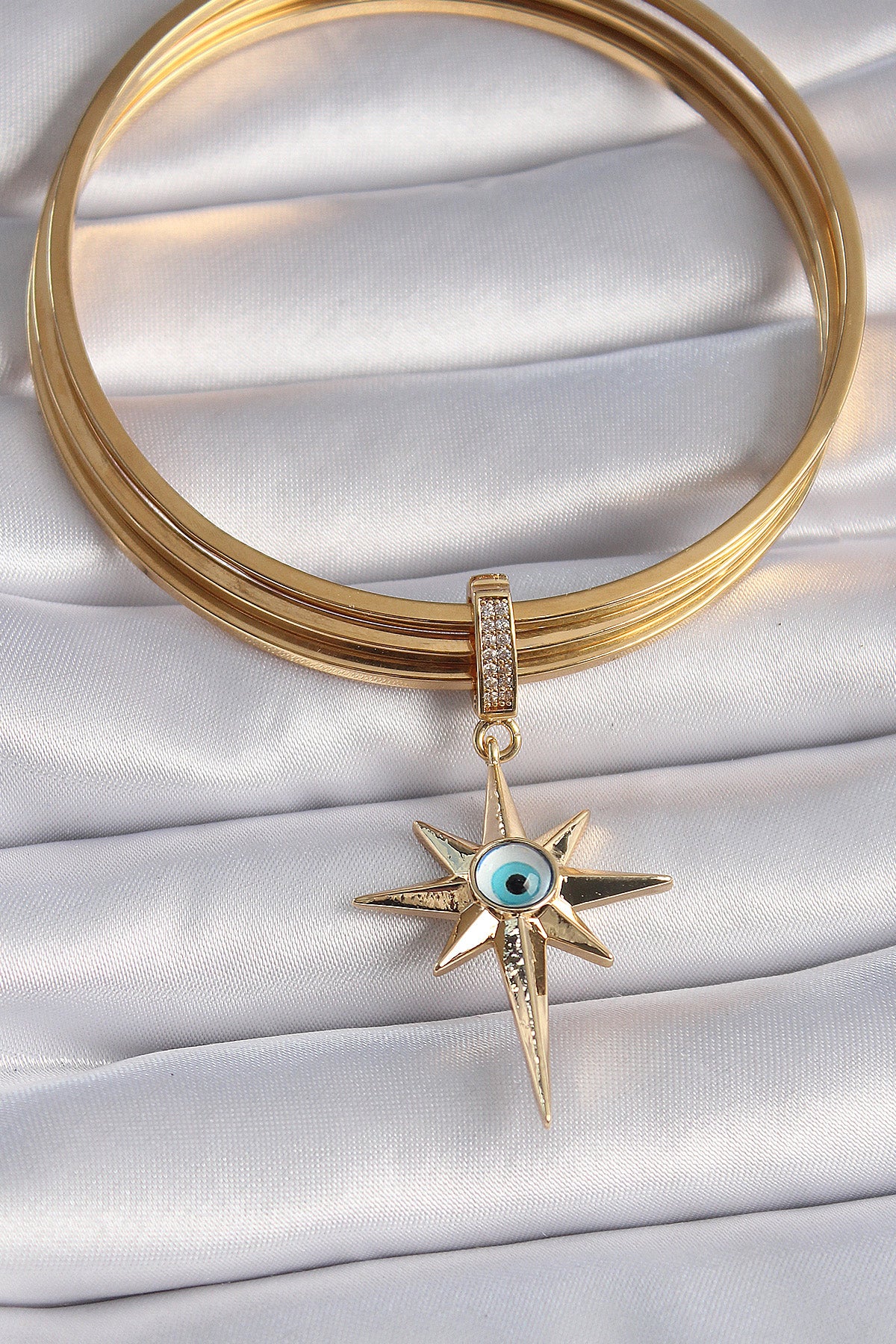 EBJ Rice Gold Color Zircon Stone Polaris Evil Eye Bead Detail Ajda Charm - Ciudad del Carmen