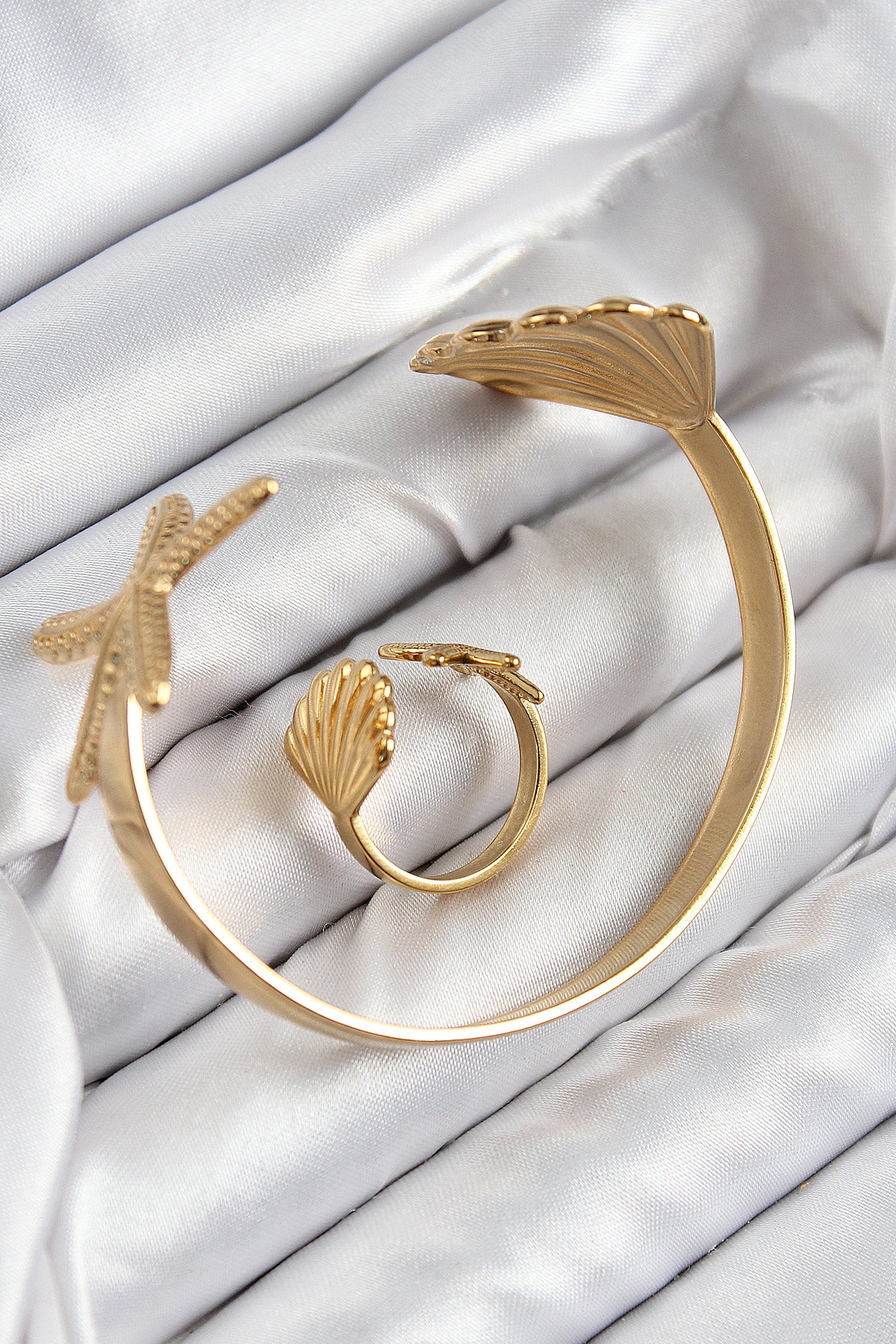 EBJ Rice Oyster and Starfish Model Gold Color Bracelet Ring Set - Farmington