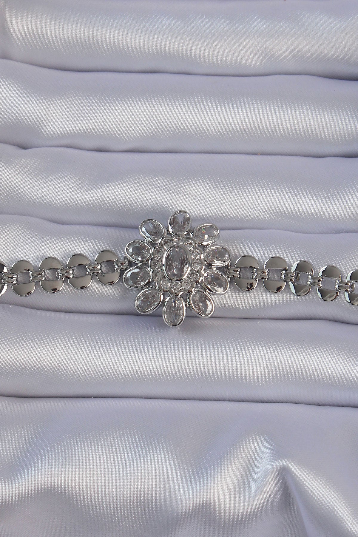 EBJ Rice Silver Color Bracelet with Large Zircon Stone Flower Figure - Binghamton