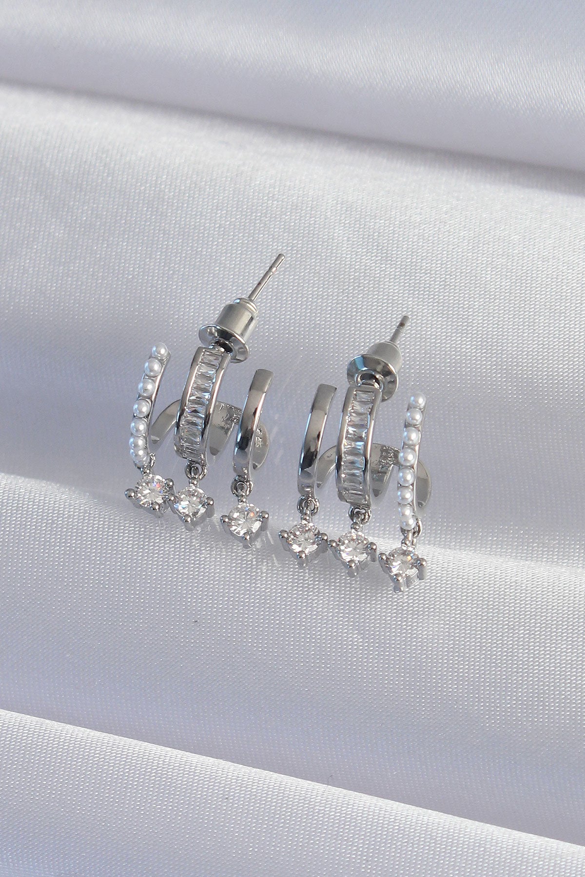 EBJ Rice Silver Color Pearl Multi Zircon Stone Half Hoop Earring - Jaén