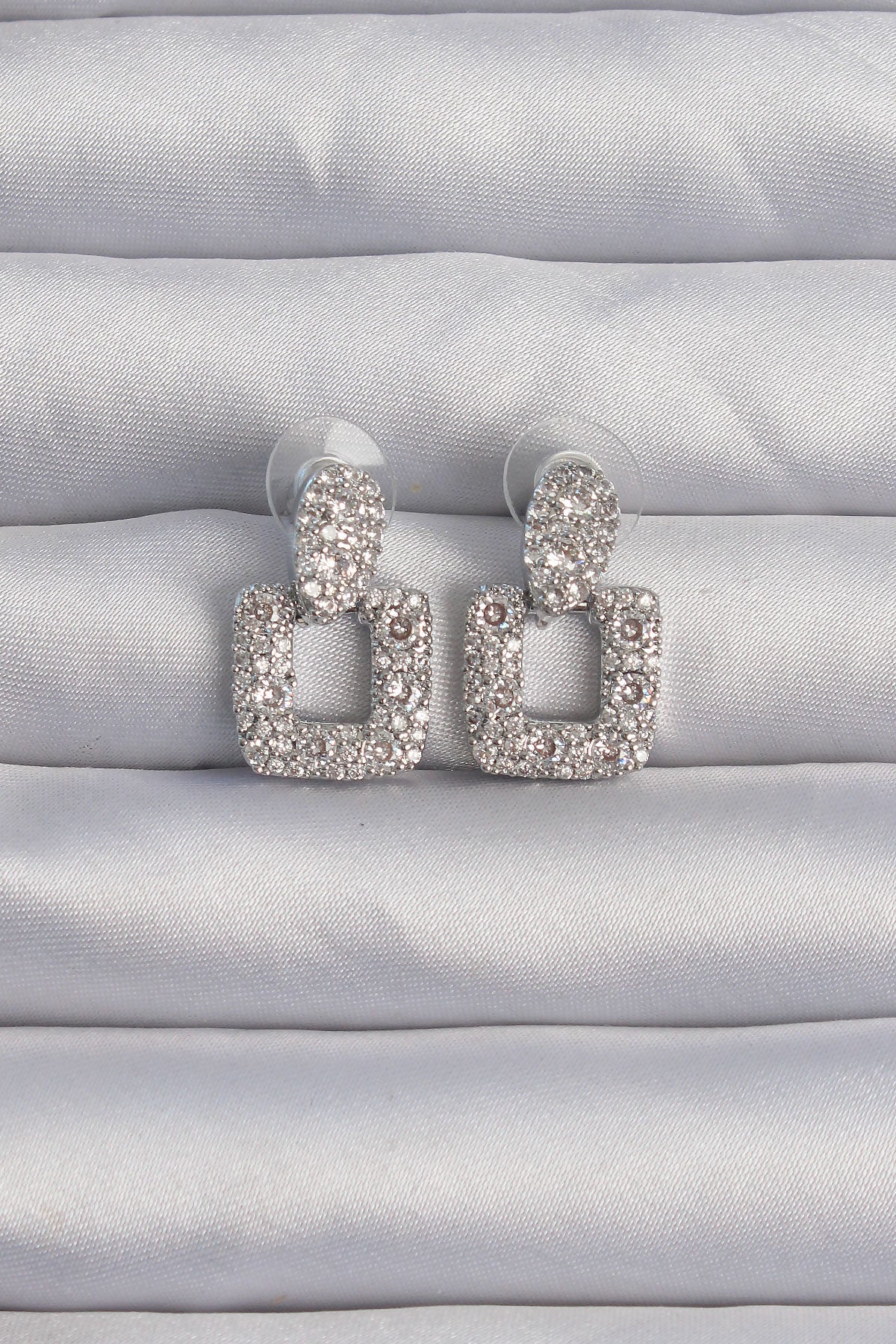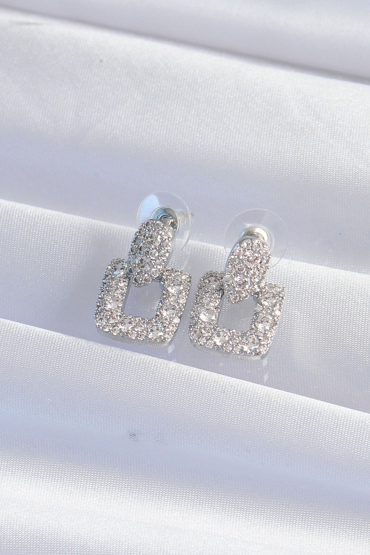 EBJ Rice Silver Color Square Shaped Earrings with Zircon Stone - Reims