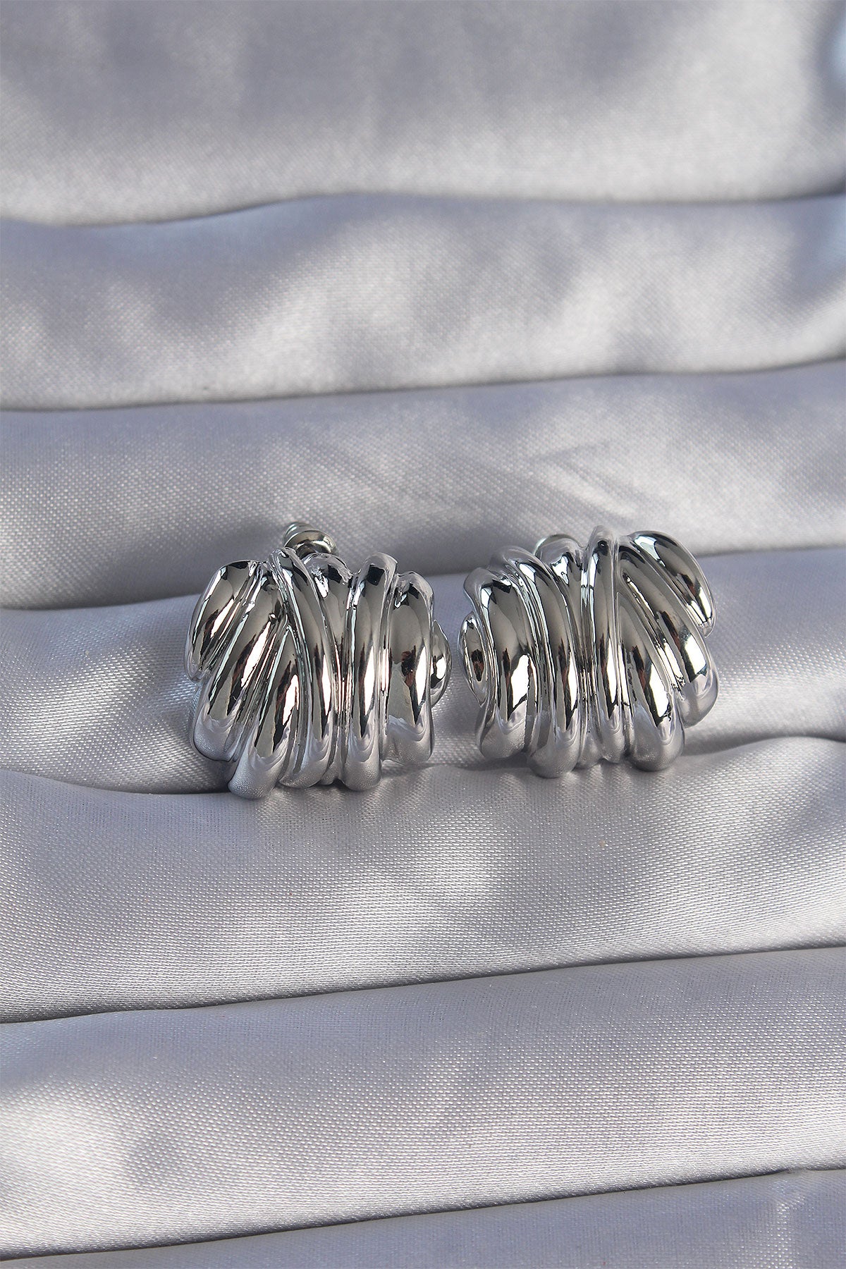 EBJ Rice Silver Color Textured Dome Model Earring - Soledad de Graciano Sánchez