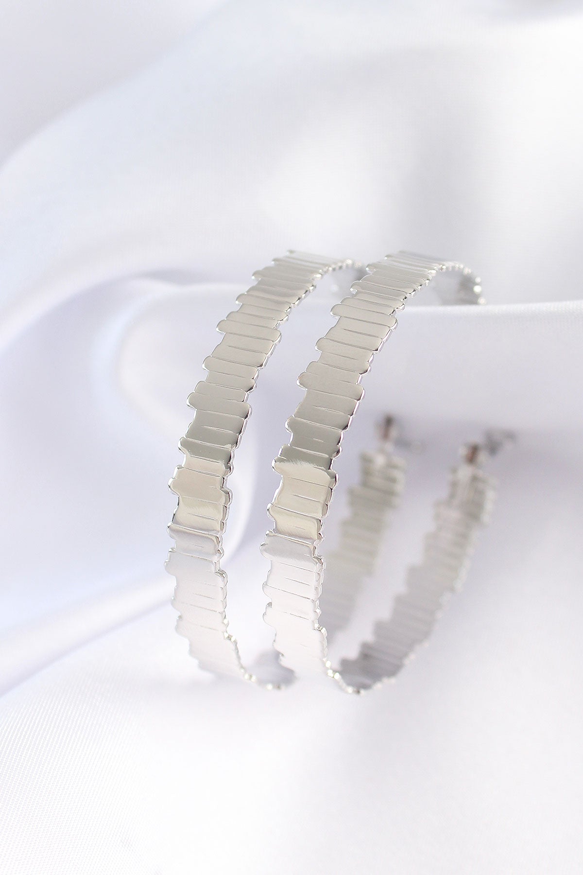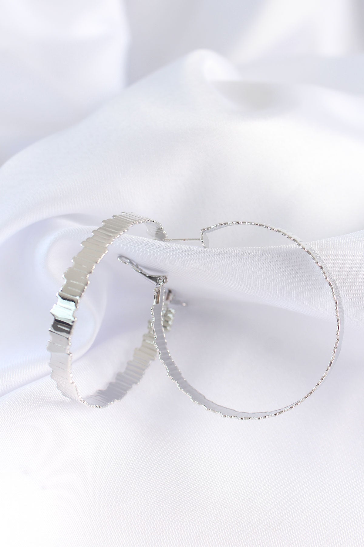 EBJ Rice Silver Color Textured Hoop Earrings - Carpi