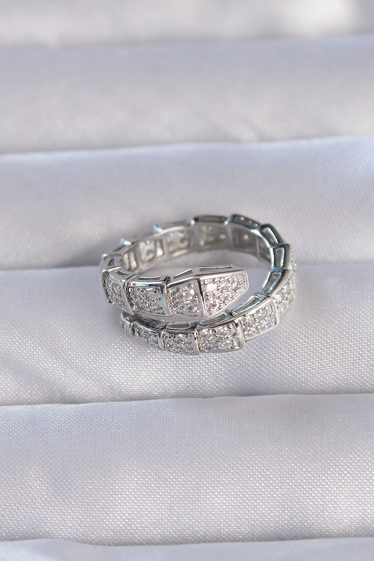 EBJ Rice Silver Color Thick Snake Model Adjustable Ring with Zircon Stone - Sint-Truiden