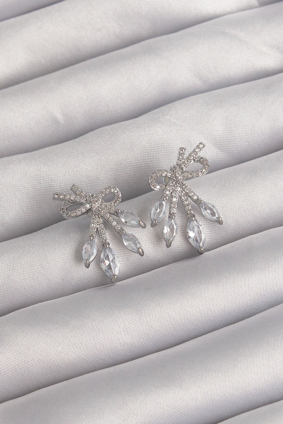 EBJ Rice Silver Color Zircon Stone Bow Earring - Assen