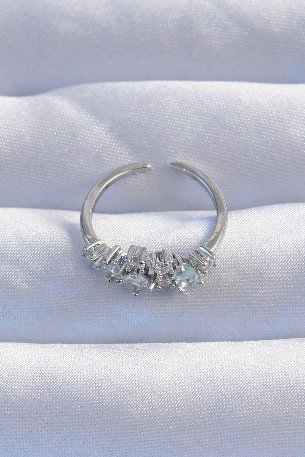EBJ Rice Silver Color Zircon Stone Drop Detail Adjustable Ring - Erkrath