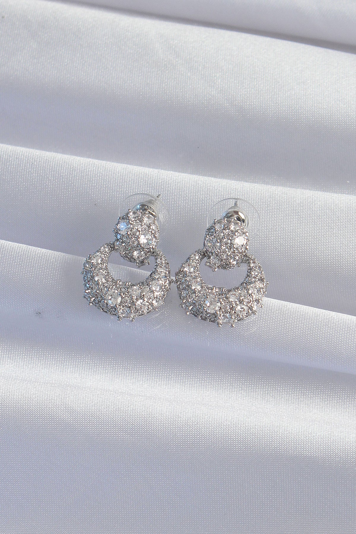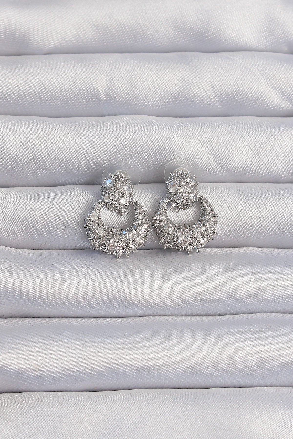 EBJ Rice Silver Color Zircon Stone Oval Shape Earring - Romny