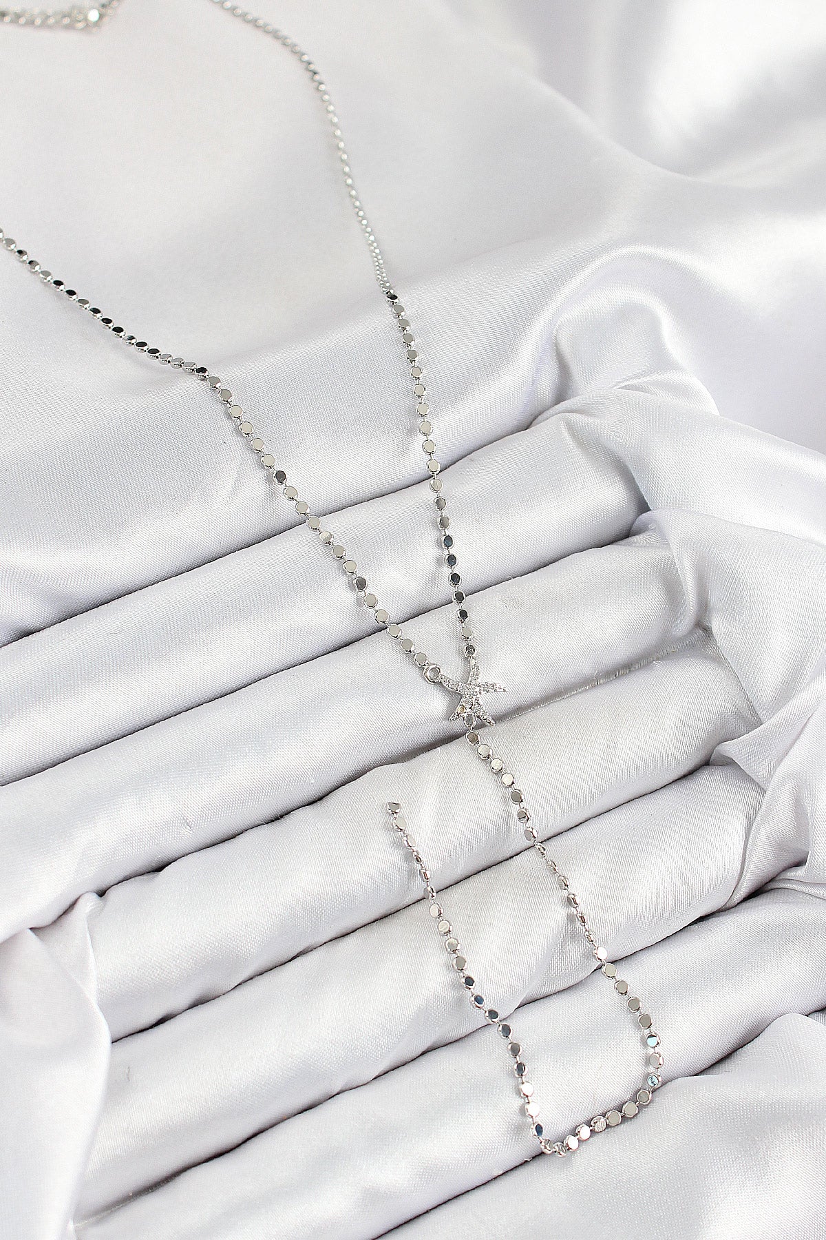 EBJ Rice Zircon Stone Crushed Chain Starfish Model Silver Color Y Necklace - Inver Grove Heights