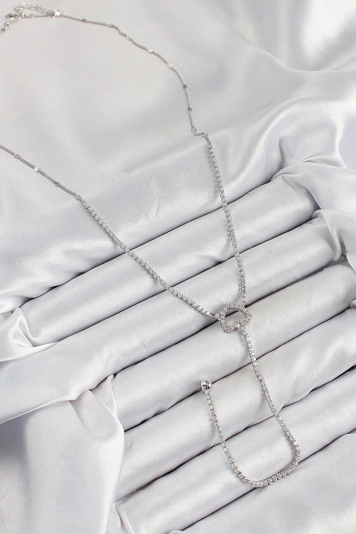 EBJ Rice Zircon Stone Heart Model Silver Color Y Necklace - College Station