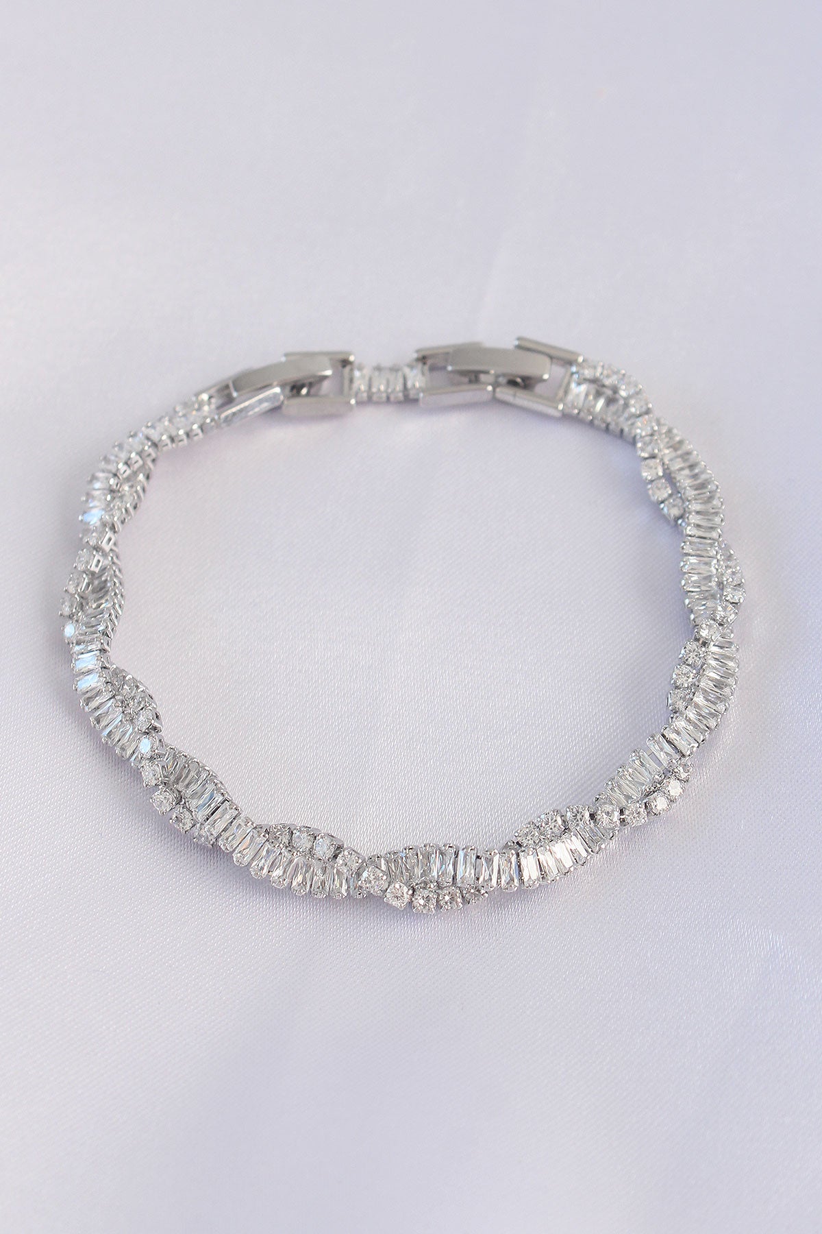 EBJ Vip Series Silver Color Spiral Model Bracelet with Rice Zircon Stone - Los Angeles