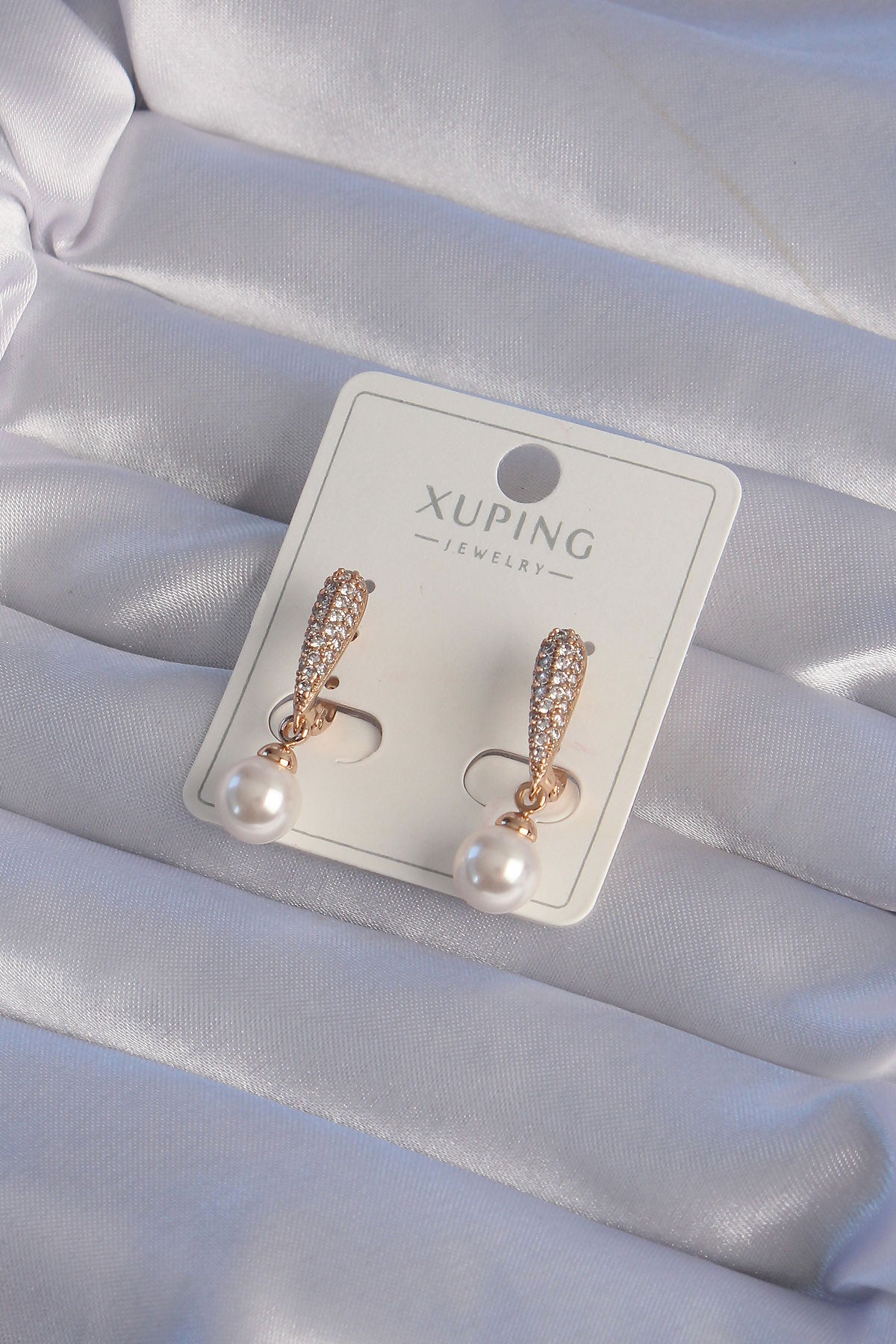 EBJ XUPİNG Rose Color Pearl Stone Half Hoop Dangle Earrings - Acilia