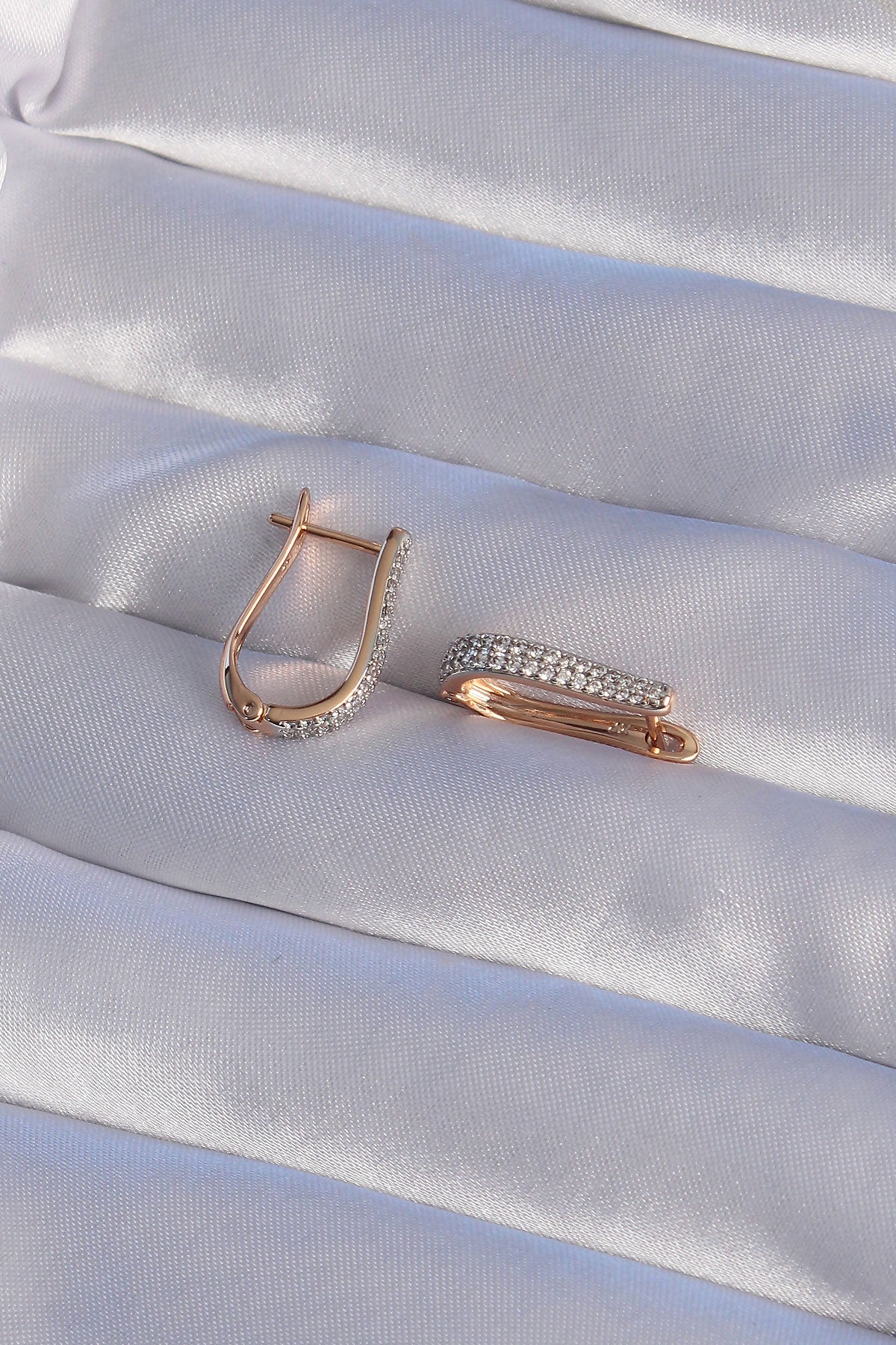 EBJ XUPİNG Rose Color Zircon Stone Curved Earring - Homburg