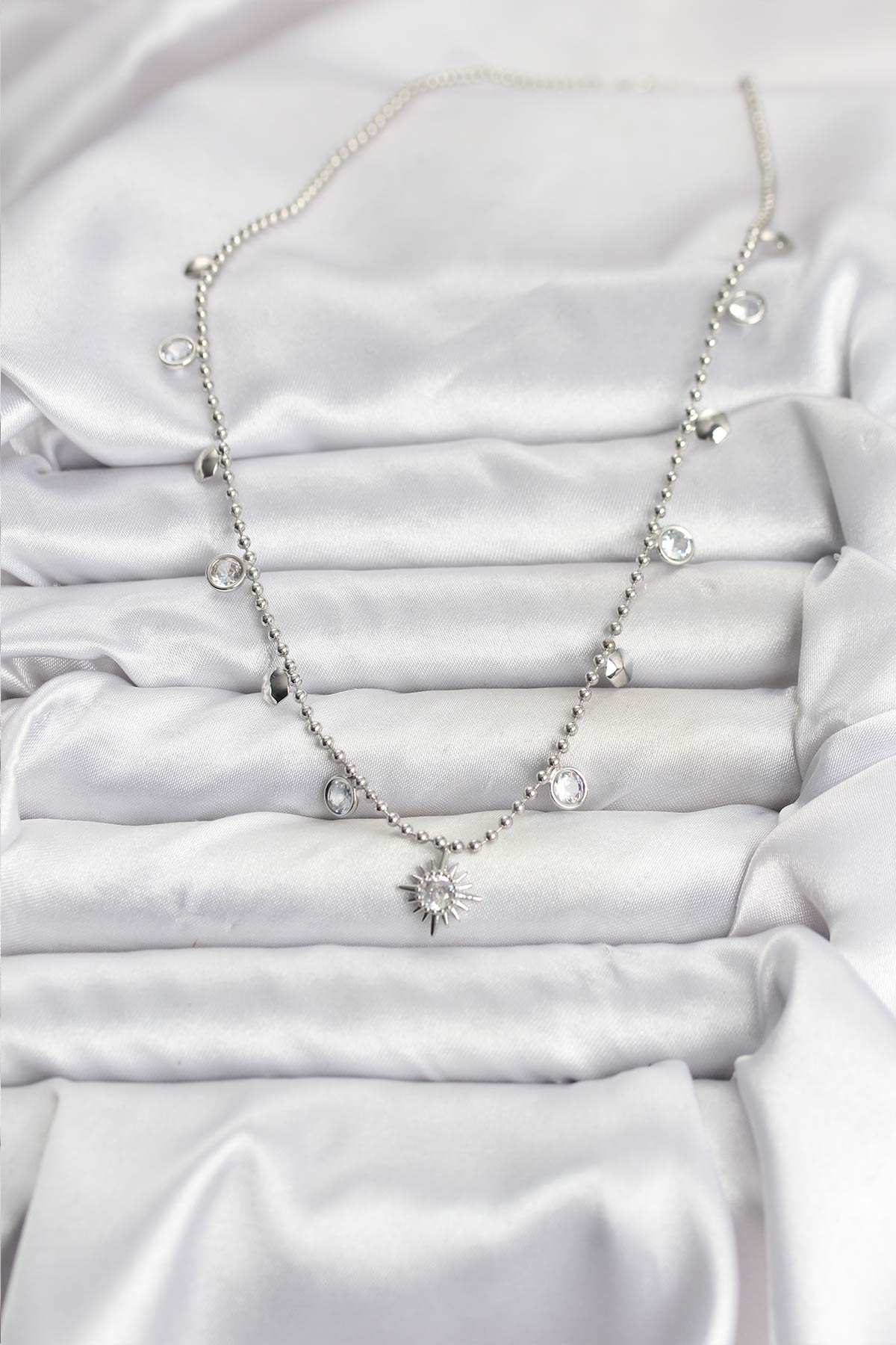 EBJ Zirkon Taşlı Kutup Yıldızı Model Pirinç Gümüş Renk Kadın Kolye - Niort