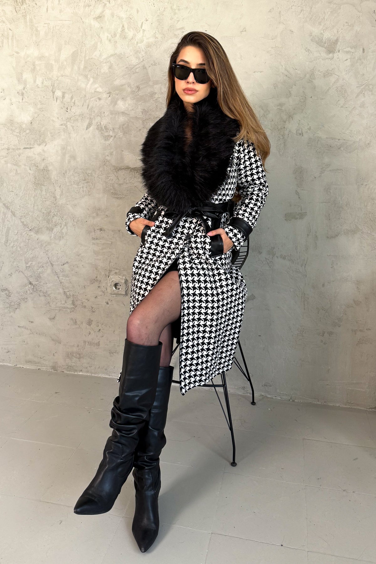 MPL Women's Fur Collar Herringbone Long Coat - Salon-de-Provence