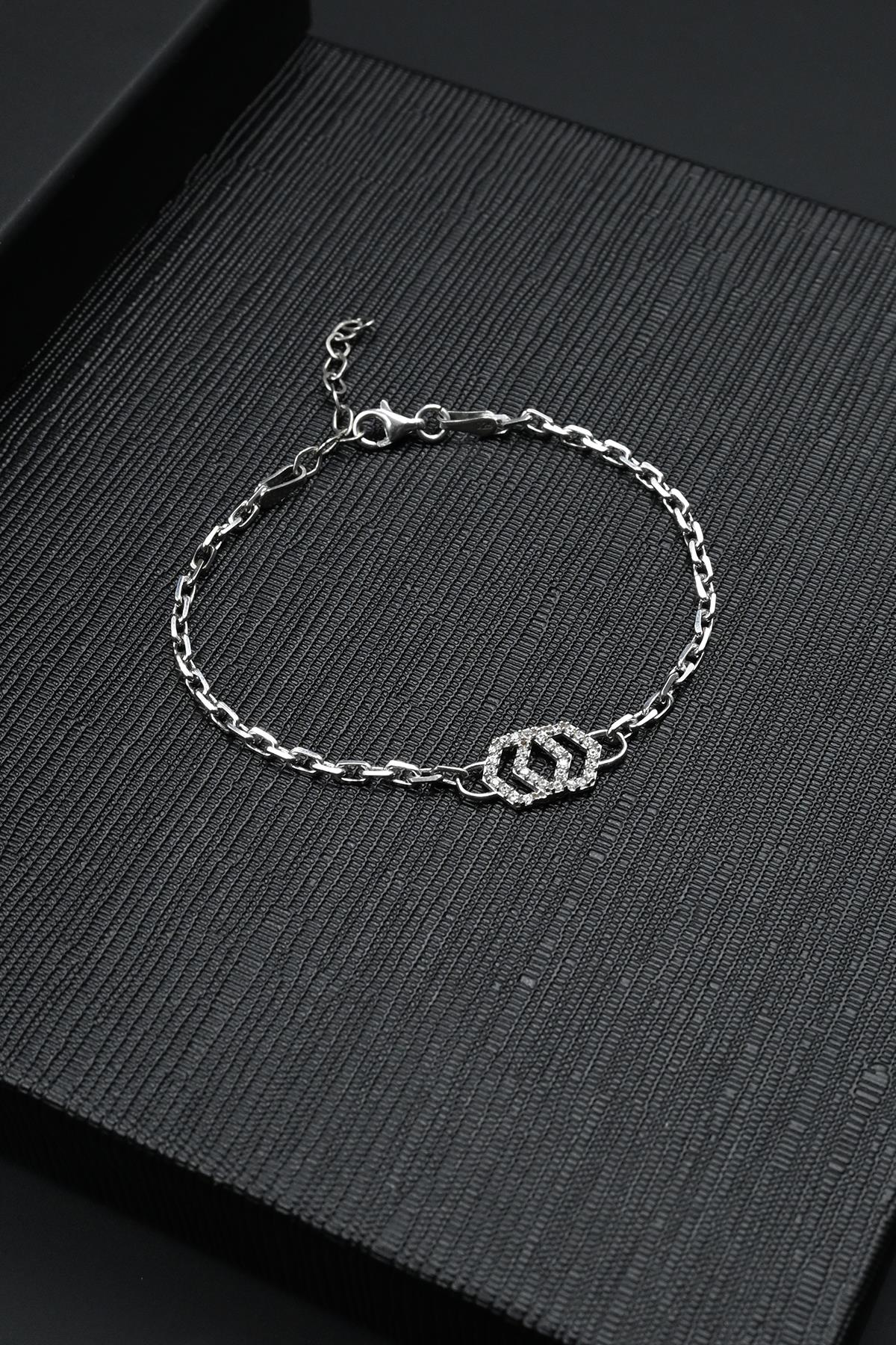 FRNCH 925 Sterling Silver Hexagonal Figure Bracelet with Zircon Stone; Material: 925 Sterling Silver Stone: Zircon Color: Silver Size: 15+4 cm; Sent in FRNCH Box; It is recommended to keep away from cosmetics, perfume, and cleaning products.