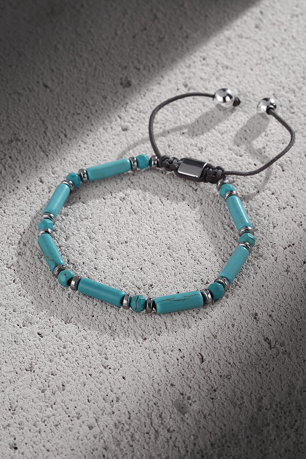 FRNCH Cylinder Varisit Natural Stone Adjustable Men's Bracelet; Stone Size: 4 mm Product Size: Adjustable Color: Turquoise; Sent in FRNCH Box; It is recommended to keep away from cosmetics, perfume, and cleaning products.
