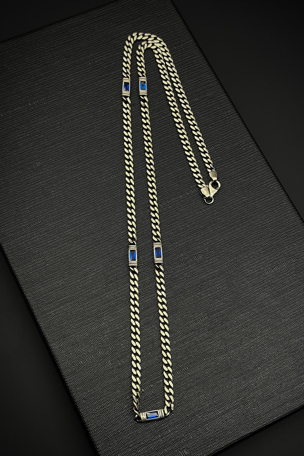 NVM FRNH 925 Sterling Silver Italian Model Navy Blue Zircon Stone Silver Color Men's Necklace FRJ30795-895-LA - Ramsgate