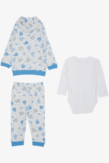 BRE Breeze Baby Boy Bodysuit 3-Piece Set Cute Baby Elephant Patterned 4 Months Year, White - Wilson