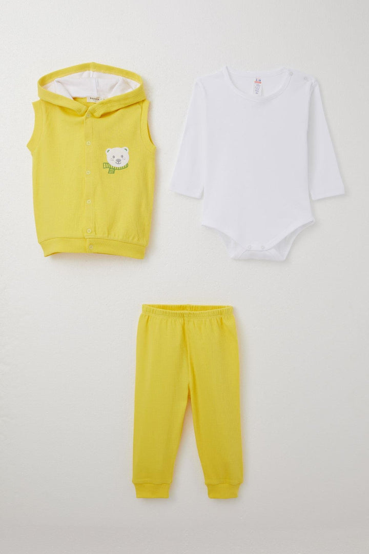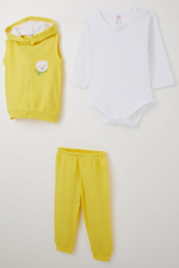 BRE Breeze Baby Boy Bodysuit 3-Piece Set Cute Bear Embroidered Hooded 4 Months Year, Yellow - Tepalcatepec