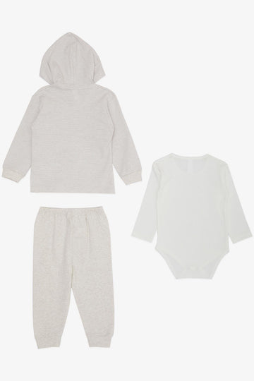 BRE Breeze Baby Boy Bodysuit 3-Piece Set Travel Themed Car Embroidered 4 Months Year, Beige Melange - Tudela