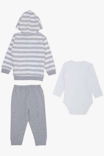BRE Breeze Baby Boy Bodysuit 3-Piece Set with Cute Bunny Embroidery Hooded 4 Months Year, Light Gray Melange - Graham