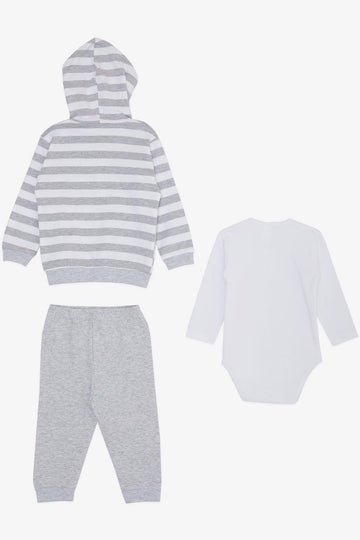 BRE Breeze Baby Boy Bodysuit 3-Piece Set with Cute Bunny Embroidery Hooded 4 Months Year, Light Gray Melange - Hurst