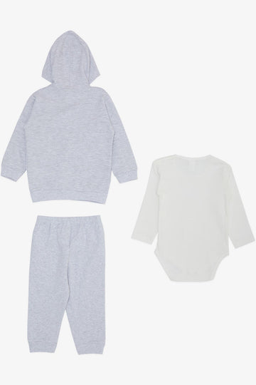 BRE Breeze Baby Boy Bodysuit 3-Piece Set with Cute Bunny Embroidery Hooded 4 Months Year, Light Gray Melange - Khartsyzk