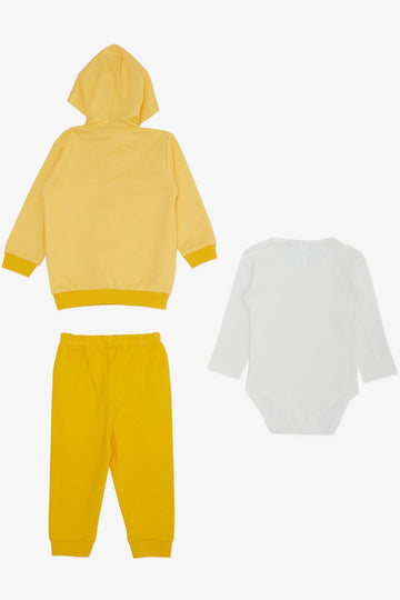 BRE Breeze Baby Boy Bodysuit 3-Piece Set with Cute Bunny Embroidery Hooded 4 Months Year, Yellow - Nicastro