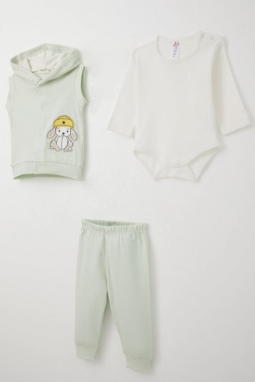 BRE Breeze Baby Boy Bodysuit 3-Piece Set with Cute Dog Embroidery and Hat, 4 Months Year, Aqua Green - Elgin