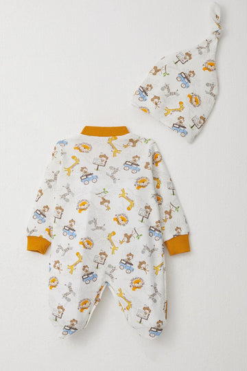 BRE Breeze Baby Boy Footed Romper Safari Themed with Animal Print 0-6 Months, White - Teotihuacan