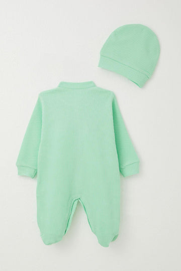 BRE Breeze Baby Boy Footed Romper with Construction Machine Print 0-6 Months, Pistachio Green - Fair Oaks