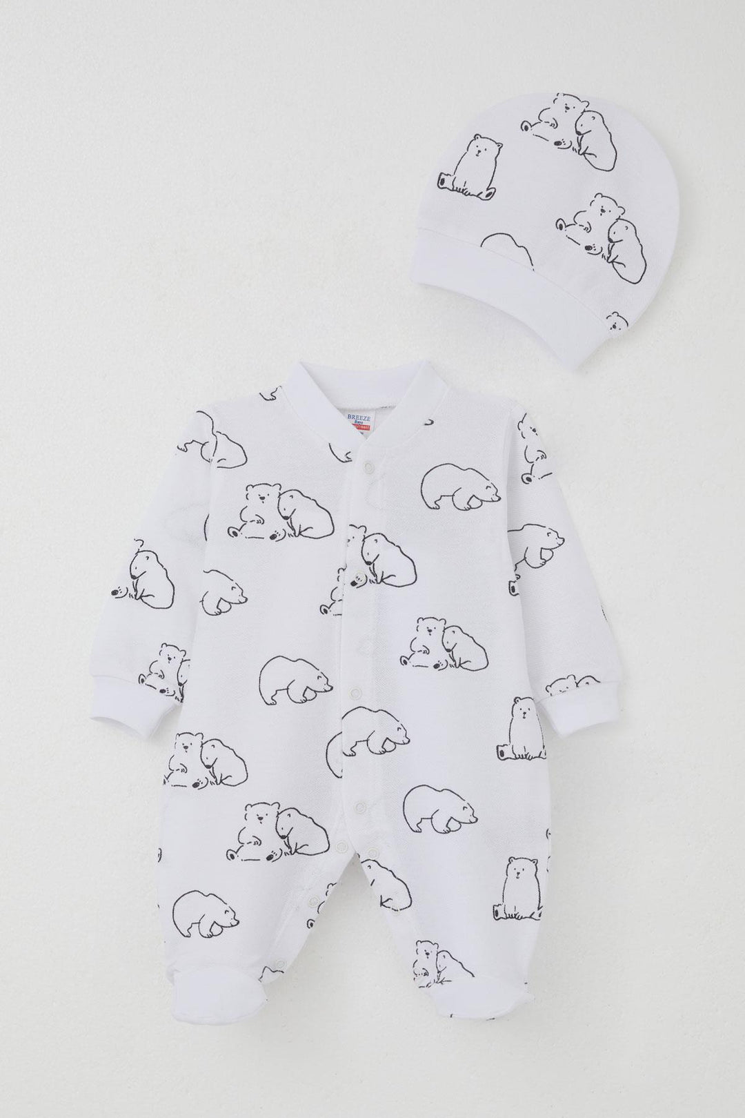 BRE Breeze Baby Boy Footed Romper with Cute Polar Bear Pattern 0-6 Months, White - Fayetteville