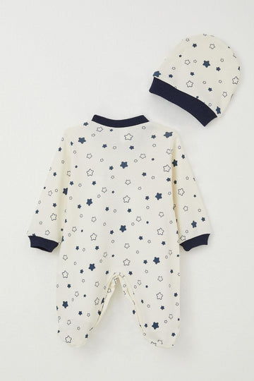 BRE Breeze Baby Boy Footed Romper with Star Pattern 0-6 Months, Ecru - North Little Rock