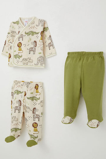 BRE Breeze Baby Boy Hospital Outfit 3-Piece Safari Themed Cute Animals 0-4 Months, Beige - Nîmes