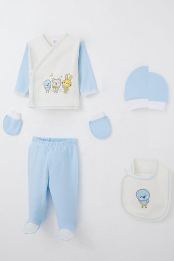 BRE Breeze Baby Boy Hospital Outfit 5 Piece Cute Animals Embroidered 0-3 Months, Ecru - Reus