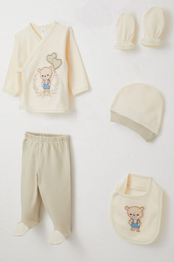 BRE Breeze Baby Boy Hospital Outfit 5 Piece Cute Bear Embroidered 0-3 Months, Cream - Lexington