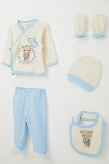 BRE Breeze Baby Boy Hospital Outfit 5 Piece Cute Bear Embroidered 0-3 Months, Cream - Vasylkiv