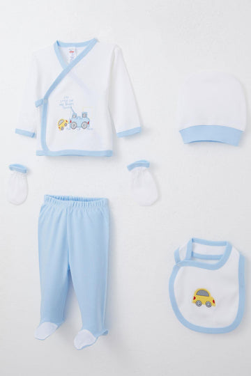 BRE Breeze Baby Boy Hospital Outfit 5 Piece Cute Little Car Rescuer 0-3 Months, Ecru - Schaumburg
