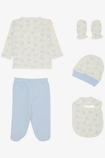 BRE Breeze Baby Boy Hospital Outfit 5 Piece Happy Baby Bear Patterned 0-3 Months, White - Fairbanks