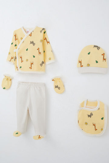 BRE Breeze Baby Boy Hospital Outfit 5-Piece Mini Safari Themed Animal Patterned, 0-3 Months, Yellow - Ourense