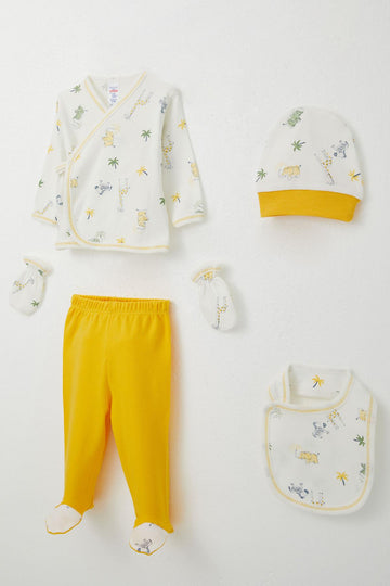 BRE Breeze Baby Boy Hospital Outfit 5-Piece Nature-Themed Cute Animals Patterned 0-3 Months, Ecru - Walnut Creek