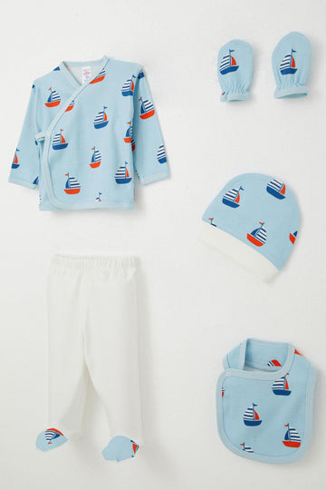 BRE Breeze Baby Boy Hospital Outfit 5 Piece Sailboat Pattern 0-3 Months, Light Blue - Sion