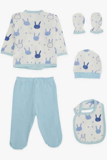 BRE Breeze Baby Boy Hospital Outfit 5-Piece Set with Bunny Pattern, 0-3 Months, White - Chicoutimi