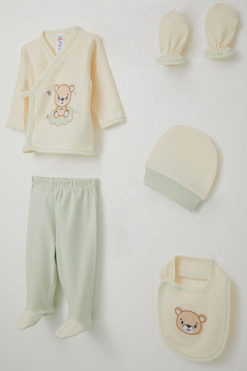 BRE Breeze Baby Boy Hospital Outfit 5-Piece with Cute Bear Embroidery 0-3 Months, Cream - Flensburg