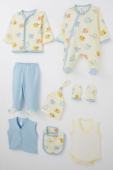 BRE Breeze Baby Boy Hospital Outfit 8 Piece Cute Elephant Patterned 0-3 Months, Yellow - Pátra