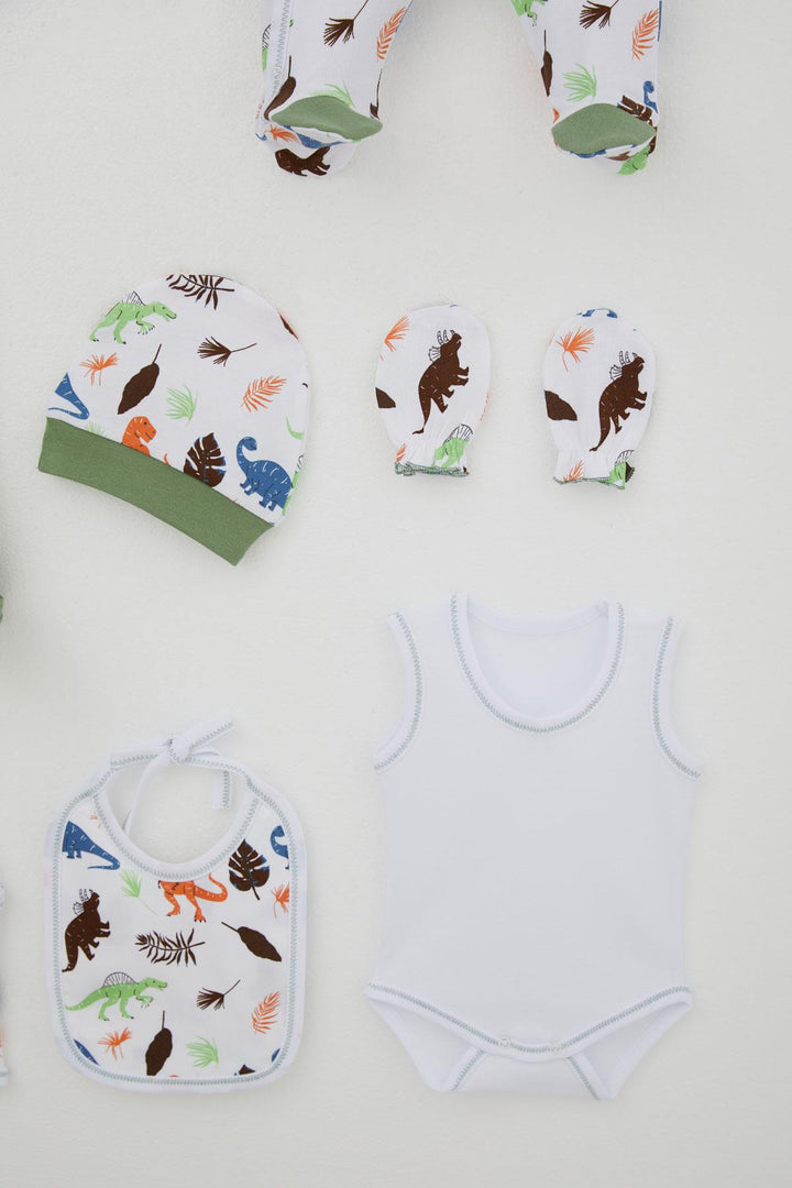 BRE Breeze Baby Boy Hospital Outfit 8 Piece Dinosaur Kingdom 0-3 Months, White - Paisley